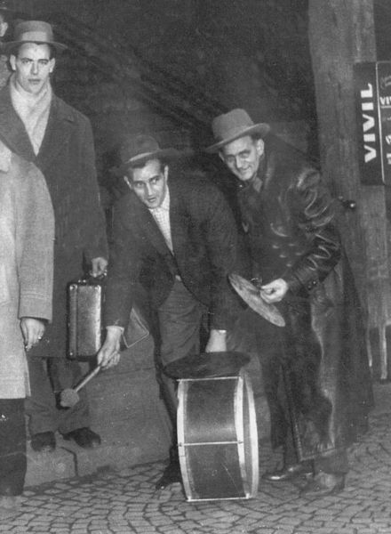 am Mindener Bahnhof, auf dem Weg zu einem Gastspiel. Immer mit dabei die